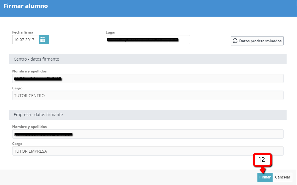 - El tutor tiene que firmar el Programa formativo del alumno Anexo II (10) y (12) . Se descarga un archivo que se puede imprimir para la firma del tutor de centro y empresa.