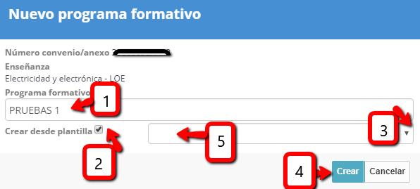- Otra opción es preparar plantillas para posteriores Programas formativos. Seleccionar en el menú principal (7).