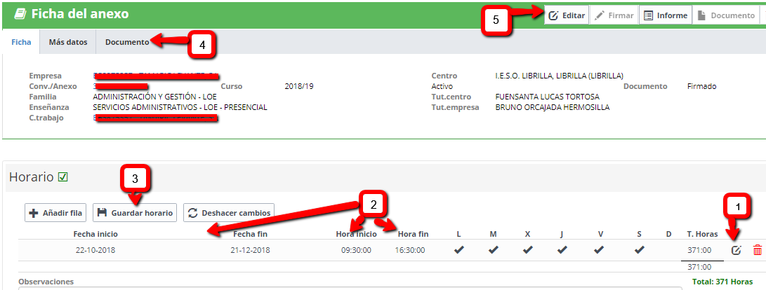 Cuando ya se ha firmado en la Aplicación un Anexo y hay que hacer modificaciones ha de seguir los siguientes pasos: