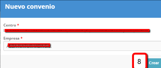 - Propondrá un nuevo convenio y pulse la opción Crear (8).
