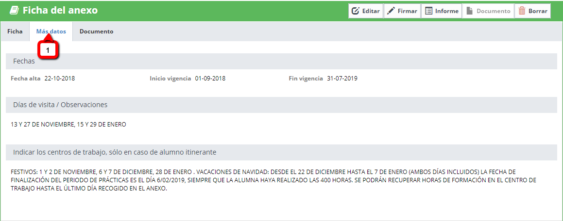 - Seleccione Mas datos de la Fichas del Anexo.